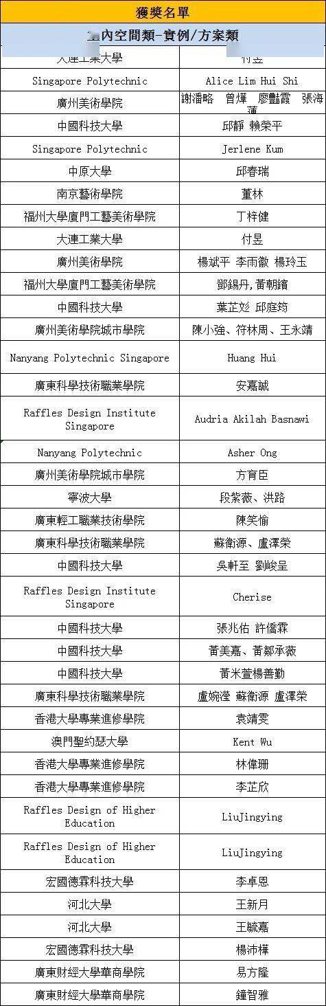 以下名單為金銀銅、優秀獎所有的獲獎名單,排名不分先後,具體獲獎名次將在頒獎典禮上公佈。