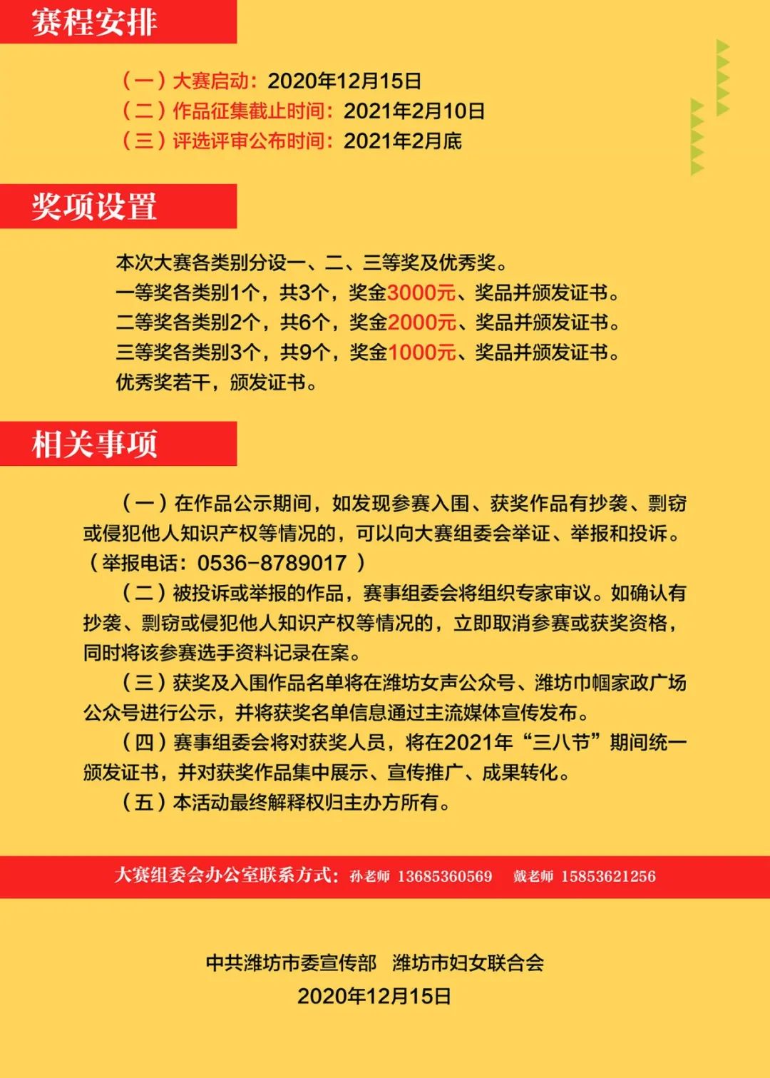 按照《国务院办公厅关于促进家政服务业提质扩容的意见》、全国巾帼家政服务提质扩容专题培训班及全国巾帼家政服务工作座谈会有关要求,促进潍坊巾帼家政服务业规范化、标准化、职业化、诚信化、品牌化发展,进一步扩大潍坊“巾帼家政”服务品牌影响力,潍坊市委宣传部、潍坊市妇联联合举办潍坊市首届“巾帼家政”文化创意大赛。详情看过来!