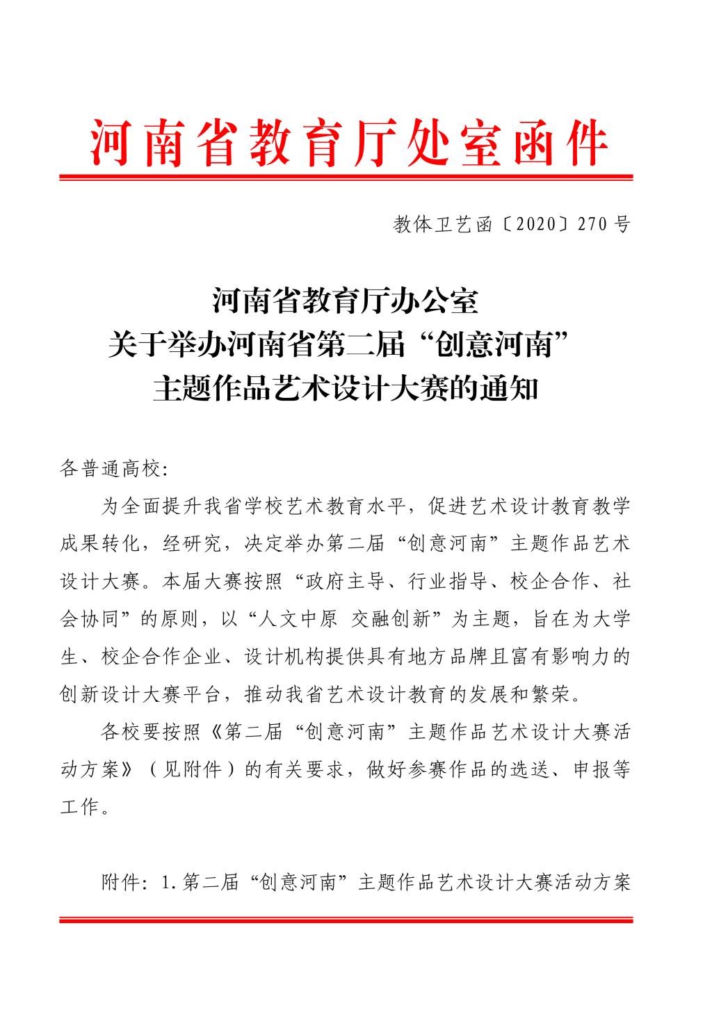 第二届“创意河南”主题作品艺术设计大赛由河南省教育厅主办,河南省学校艺术教育协会、郑州轻工业大学易斯顿国际美术学院、黄河科技学院承办,河南省工艺美术职业教育集团、河南安行文化发展有限公司、 大河美术报、河南文化网等单位协办。