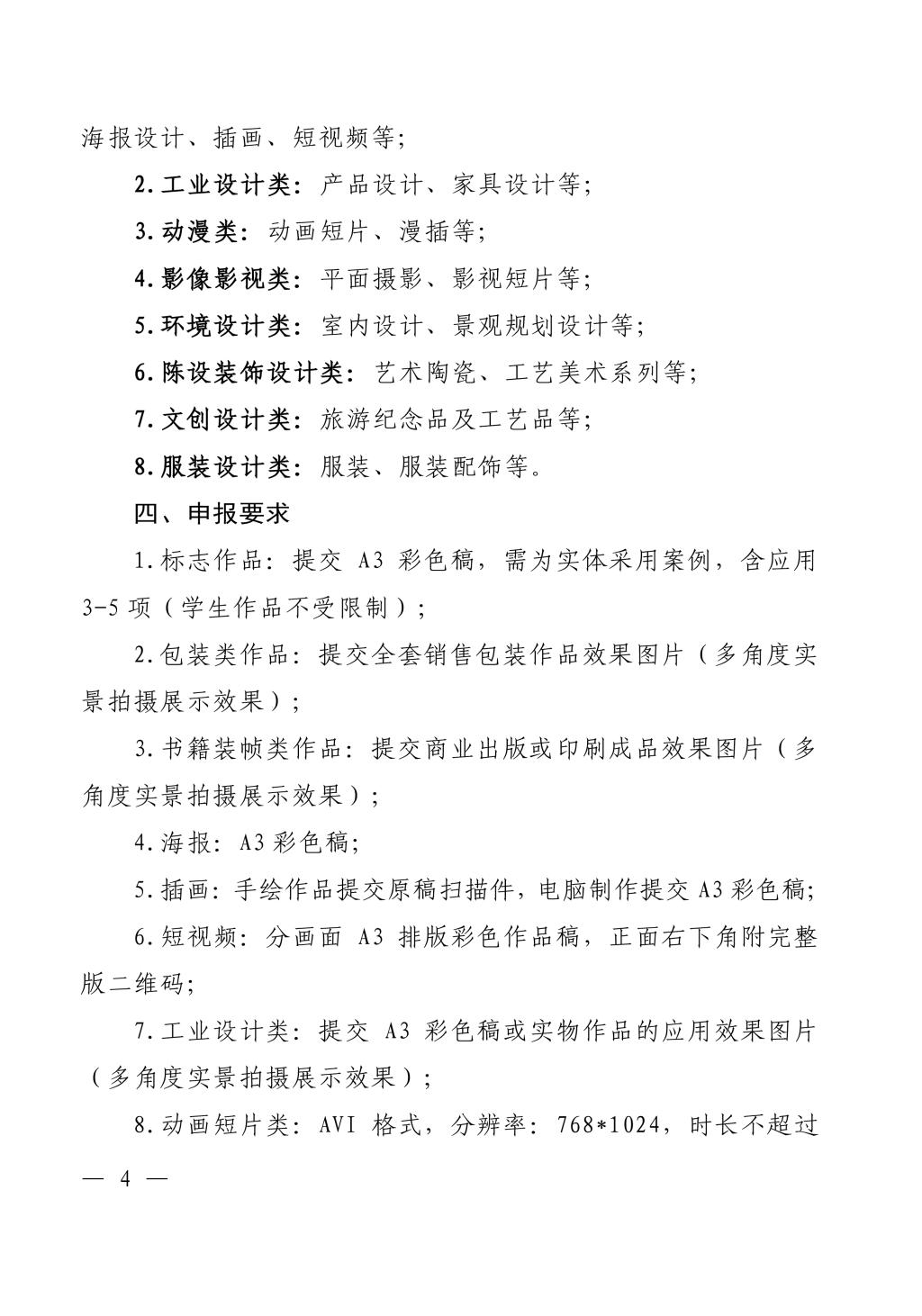 近两年来完成的视觉传达设计类、工业设计类、动漫类、影视影像类、环境设计类、陈设装饰设计类、文创设计类、服装设计类设计作品均可参加。