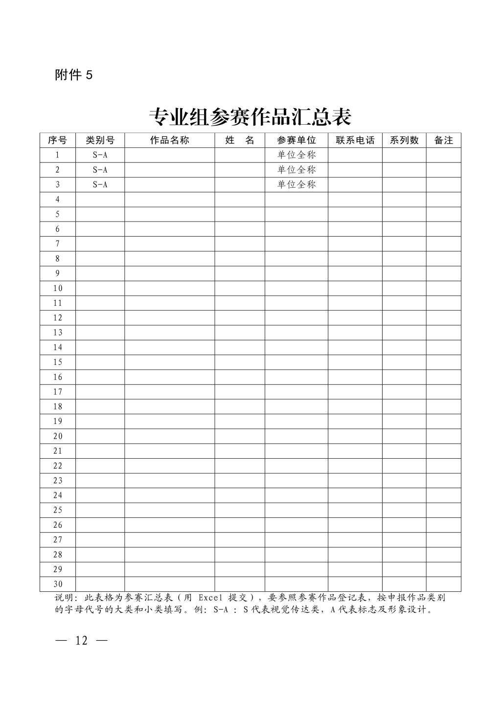 6.所有申报作品均要求规范填写“参赛作品登记表”和“参赛作品汇总表”(学生组、专业组) 。