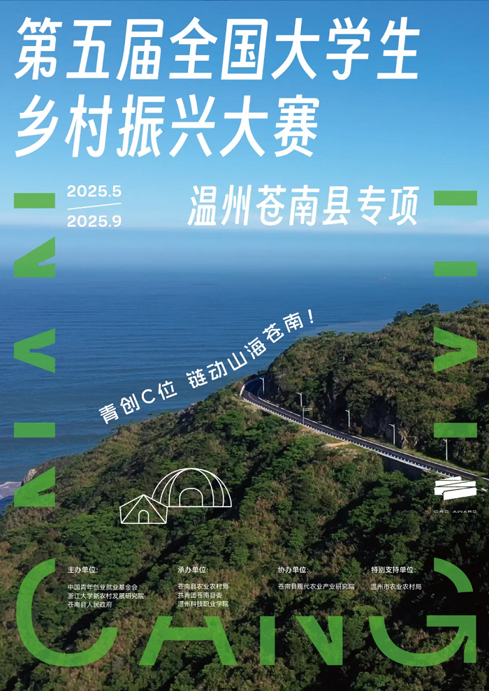 为激发大学生的创新活力,推进创新链、产业链、资金链、人才链深度融合,构建产学研用深度融合的技术创新体系,助力县域人才要素流动,推动农业高质量发展,拟举办第五届全国大学生乡村振兴大赛·温州苍南县专项(以下简称“大赛”)。