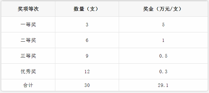奖金池近30万:一等奖团队,每支团队可以获得5万元奖金。总奖金将覆盖所有获奖团队(包括一等奖、二等奖、三等奖、优秀奖共30支团队)。