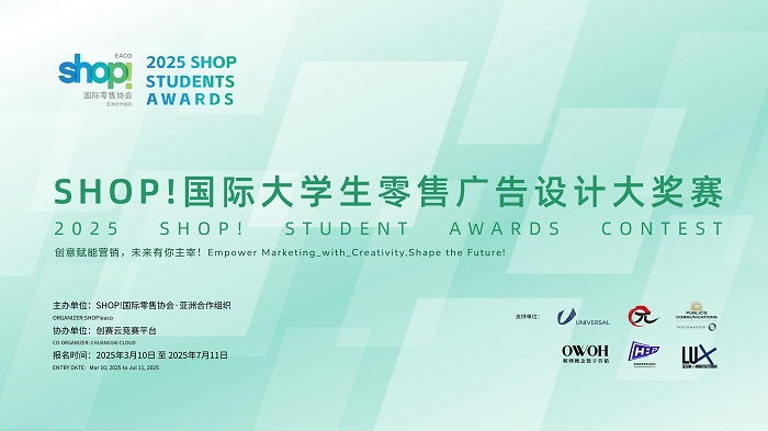 SHOP!国际大学生零售广告设计大奖赛由Shop国际协会主办,旨在激发大学生的创意潜能,提升广告专业学生的实际操作能力,推动广告教育改革,促进广告行业与高校的交流与合作。通过广告营销设计大赛和广告营销技能知识竞赛,培养大学生的创新意识和实践能力,提供一个展示自我、交流学习的平台,增强大学生的团队协作精神和社会责任感。并激发大学生的创意潜能,提升他们的实际操作能力,推动广告教育改革,促进广告行业与高校的交流与合作。